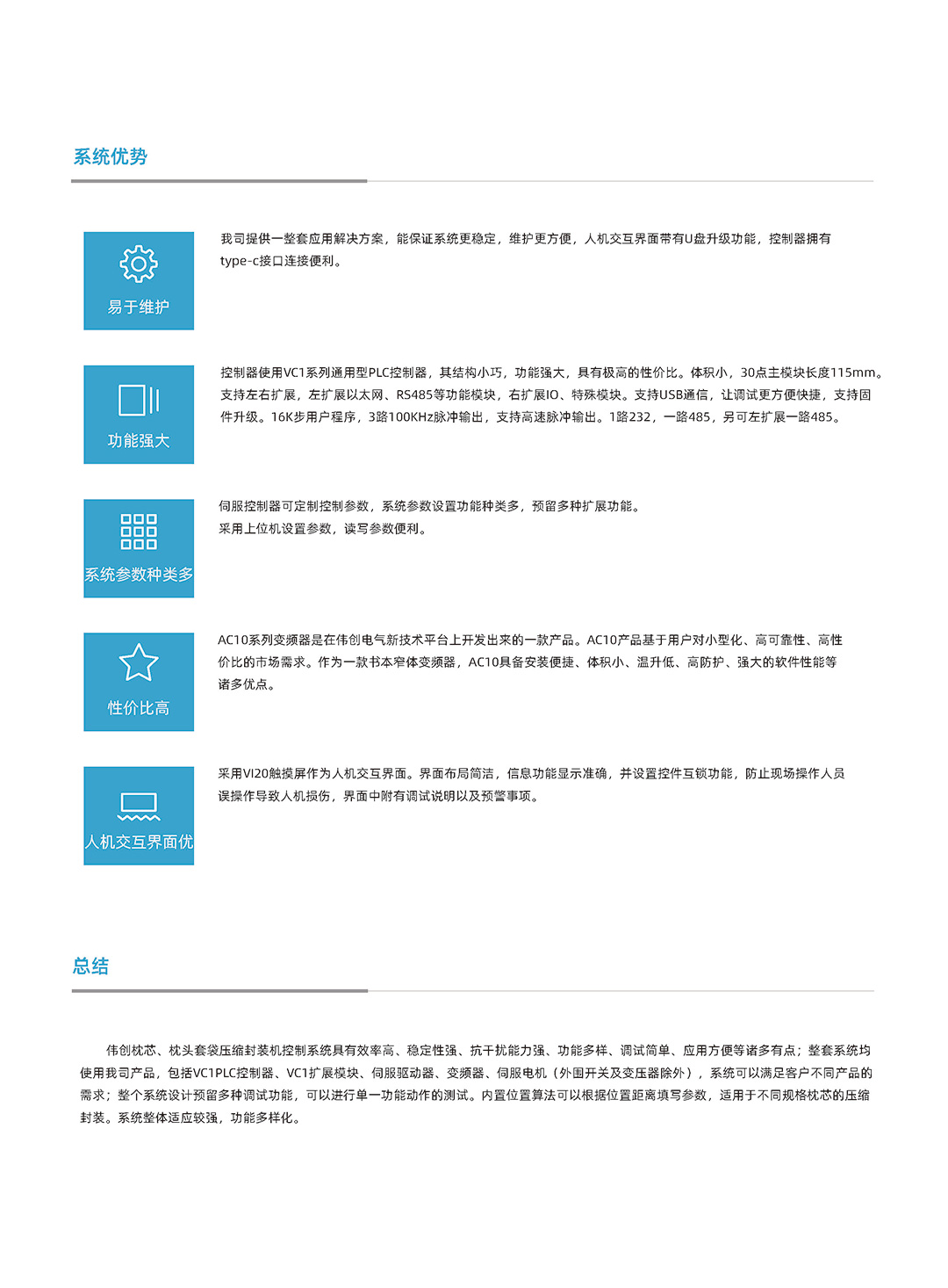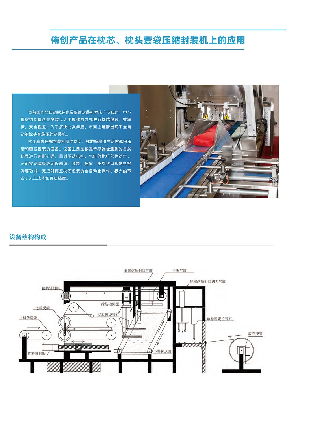 伟创产品在枕芯、枕头套袋压缩封装机上的应用